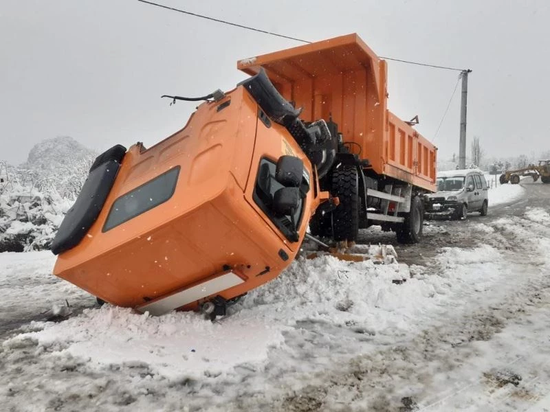 Konya’nın Derebucak ilçesinde karla mücadele çalışması yapan kamyonun karıştığı kazada 2 kişi yaralandı.