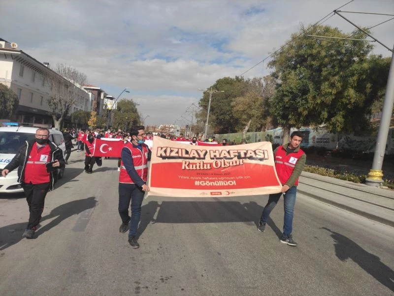 Konya’da Kızılay Haftası kapsamında "Haftalara, aylara, yıllara sığmayan iyilik için gönüllü ol" temasıyla yürüyüş etkinliği gerçekleştirildi.