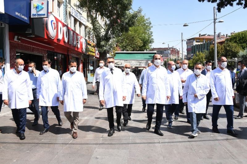 Konya’nın 31 ilçesinde aynı anda gerçekleştirilen denetimlere Konya merkez’de AK Parti Konya Milletvekili Ziya Altunyaldız, Büyükşehir Belediye Başkanı Uğur İbrahim Altay, Selçuklu Belediye Başkanı Ahmet Pekyatırmacı, Karatay Belediye Başkanı Hasan Kılca, Meram Belediye Başkanı Mustafa Kavuş, Selçuk Üniversitesi Rektörü Prof. Dr. Metin Aksoy ve muhtar derneklerinin başkanları katıldı. Protokol dikkat çekmek için beyaz önlük giyerek vatandaşları uyardı.