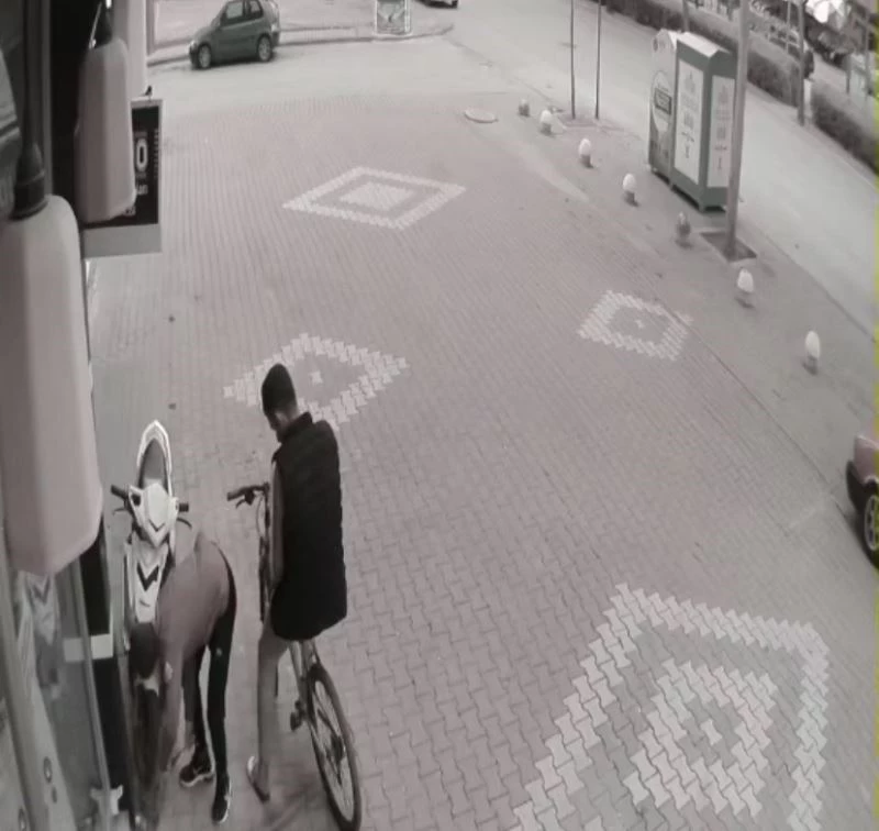 Yaşanan elektrikli bisiklet hırsızlığı ise güvenlik kameralarına yansıdı. Görüntülerde bisikletle gelen 2 şahsın öncelikle tespit ettikleri elektrikli motosikleti bir süre gözlemlediği, şahıslardan birinin elektrikli motosikletin yanına gittiği, diğer şahsın ise bisikletle gözcülük yaptıktan sonra demir makasını arkadaşına verdiği ve demir makasıyla kilidi keserek elektrikli motosikleti alıp oradan uzaklaştıkları görülüyor.