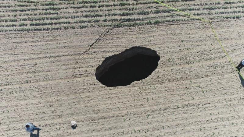 Konya’nın Cihanbeyli ilçesinde pancar tarlasında 20 metre çapında 15 metre derinliğinde obruk oluştu.