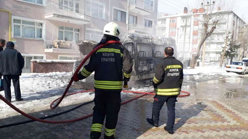 Yangın, Akşehir Altunkalem Mahallesi Şehit Ahmet Ozan Şarlak Sokak’ta çıktı. Edinilen bilgiye göre, Ahmet Karaboğa’ya ait olduğu öğrenilen ve öğrencileri okullarına bıraktıktan sonra park edilen okul servis aracında henüz bilinmeyen bir nedenle yangın çıktı. Yangının kısa sürede büyümesi üzerine minibüs alevler içinde kaldı. Servis minibüsünün alevler içinde kalarak yanması çevredeki vatandaşlar tarafından cep telefonuyla görüntülendi. İtfaiye tarafından söndürülen minibüsün kullanılamaz hale geldiği öğrenildi.