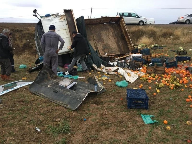 Kaza sonrası, kamyonetin kasasındaki meyve ve sebzeler tarlaya saçıldı. Sürücü, hayati tehlikesi bulunması sebebiyle Konya’ya sevk edildi.