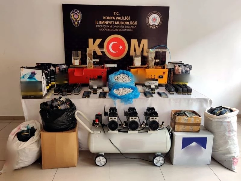 Konya Emniyet Müdürlüğü ekiplerinin kent genelindeki çalışmaları devam ediyor. Kaçakçılık ve Organize Suçlarla Mücadele (KOM) Şube Müdürlüğü ekiplerince yürütülen çalışmalarda Selçuklu ilçesinde bir iş yerinde arama yapıldı. Aramada, 2 adet ruhsatsız tabanca, 4 adet tabanca sürgü takımı, 1 adet pompalı tüfek ele geçirildi. Yine Selçuklu ve Karatay ilçelerinde ekiplerin yaptığı çalışmalarda, 2 adet sigara dolum makinesi, 1 adet hava kompresörü, 48 kilo gümrük kaçağı tütün, 5 bin 100 adet dolu olmak üzere toplam 68 bin 650 adet makaron ele geçirildi. Ayrıca 4 kişiye ait ev ve iş yerlerinde yapılan aramalarda 14 adet gümrük kaçağı cep telefonu ele geçirildi. Olaylarla ilgili toplam 9 kişi yakalandı.