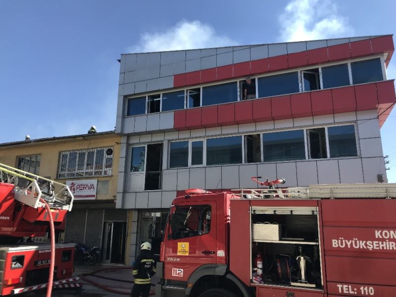 Konya’da tekstil atölyesinin çatısında çıkan yangın maddi hasara yol açtı.