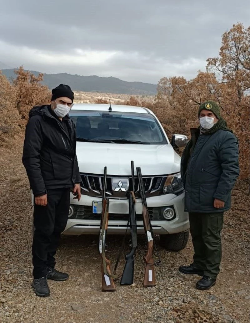 Avcılar hakkında yasal işlem başlatarak idari para cezası kesen ekipler, ele geçirilen ruhsatsız 3 av tüfeğine ise el koydu.