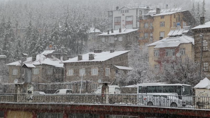 Konya’nın Hadim ilçesinde sabah saatlerinde başlayan kar yağışı ilçe merkezini beyaza bürüdü.