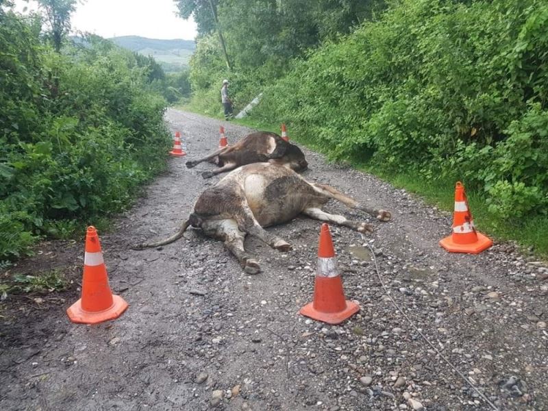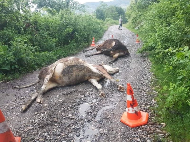 Zonguldak’ın Çaycuma ilçesinde kopan elektrik telleri sonucu 2 hamile büyükbaş hayvan telef oldu.