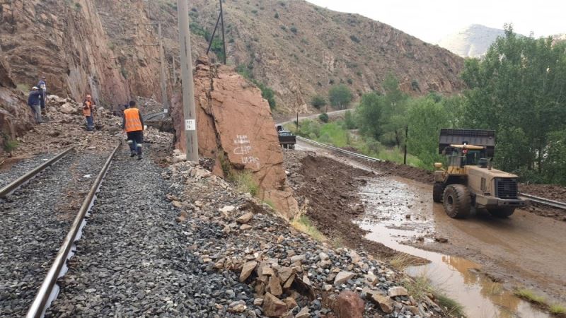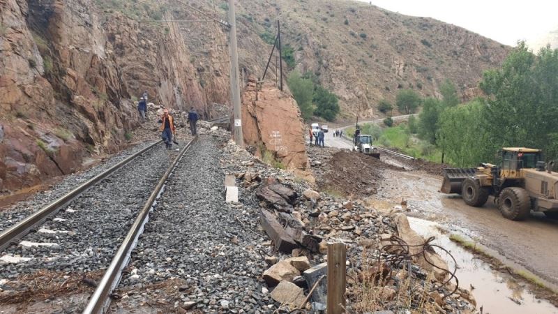 Sivas’ın Divriği ilçesinde yağışın etkisiyle kopan kaya parçaları, tren ve karayolunu ulaşıma kapattı.