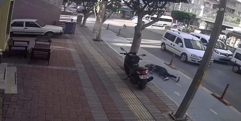 Kaza anı ise bir iş yerinin güvenlik kameralarına saniye saniye yansıdı. Kameraya yansıyan görüntülerde köpeğe çarpma anı, sürücünün motosikletten fırlaması, vatandaşların yardıma koştuğu görüldü.