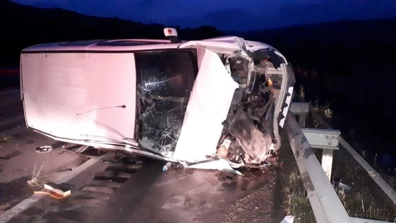 Amasya’da köpeğe çarpmamak için sürücünün yaptığı ani manevra sonucu kontrolden çıkan araç refüjdeki bariyerlere çarpıp yan yattı. Araçta bulunan 3 kişi hafif yaralandı.