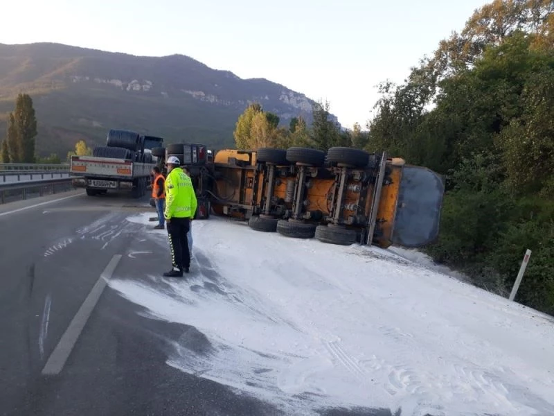 Köpeğe çarpmamak için manevra yapan tır devrildi: 2 yaralı