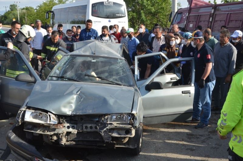 Konya’nın Ereğli ilçesinde önüne çıkan köpeğe çarpmamak için manevra yapan sürücünün kullandığı otomobilin, aynı yöndeki işçi servisi ve otomobile çarpması sonucu meydana gelen kazada 4 kişi yaralandı.