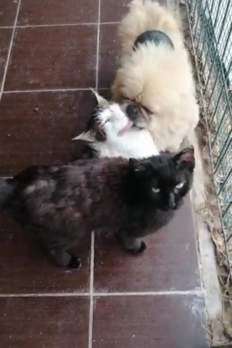 Hayvansever Mefaret Özmez’in sokaktan bulup beslediği kediler, yine onun beslediği köpekle herkesi kıskandıran bir dostluk kurdu. Görenlerin kavga etmelerine alışık olduğu kedi ve köpekler bu defa dostluğuyla dikkat çekti. Özmez, "Köpeği evde bulunan 3 kediyi o kadar seviyor ki onları yalamadan edemiyor. Kedilerin peşinden ayrılmayan köpek onları bir an yalnız bırakmayıp yalayarak sevgisini gösteriyor. Kediler de kendilerine sevgisini sunan köpeğin bir an olsun yanından ayrılmıyor" dedi.