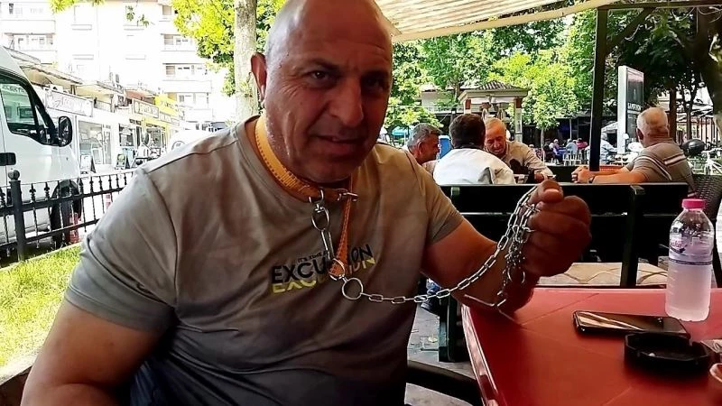 Sakarya’nın Pamukova ilçesinde köpek tasması ile dolaşan 51 yaşındaki vatandaş şaşırttı. Nefsini terbiye etmek için tasma ile dolaştığını aktaran Fevzi Aral, “Nefsim namaza gitmiyor, namaz kılmıyor, insan olamıyor. Amacım nefsimi dizginleyip camiye götürmek” dedi.