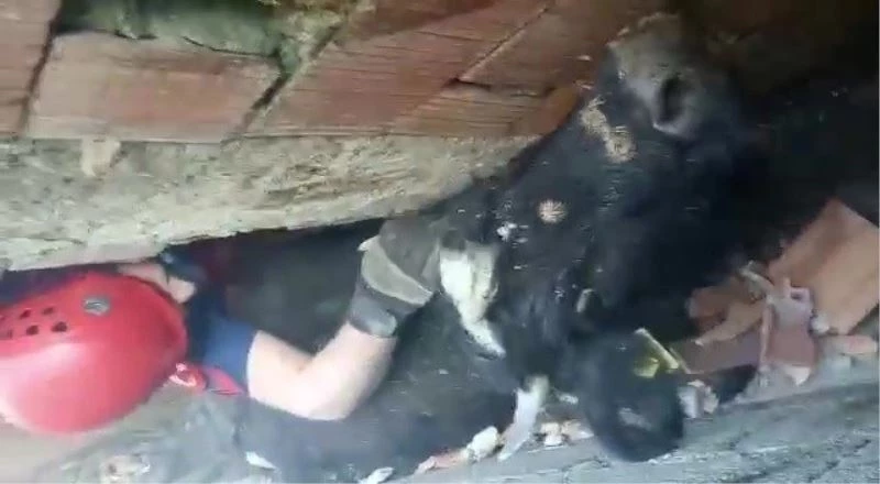 Olay Düzce’nin Bahçeköy Köyü’nde meydana geldi. Edinilen bilgilere göre Ömer Karabulut’a ait inek otlarken köpekler tarafından kovalandı. İnek kaçarken dengesini kaybederek inşaat halinde olan binanın iki duvar arasına düşerek sıkıştı. İneğin bağırmasını duyan çevredeki vatandaşlar durumu Düzce Belediyesi İtfaiye Müdürlüğü ekiplerine haber verdi. Kısa süre içerisinde bölgeye gelen ekipler iki duvar arasında sıkışan ineği yapılan çalışmanın ardından kurtararak sahibine teslim etti. İneğine kavuşan Ömer Karabulut ise İtfaiye ekiplerine teşekkür etti.