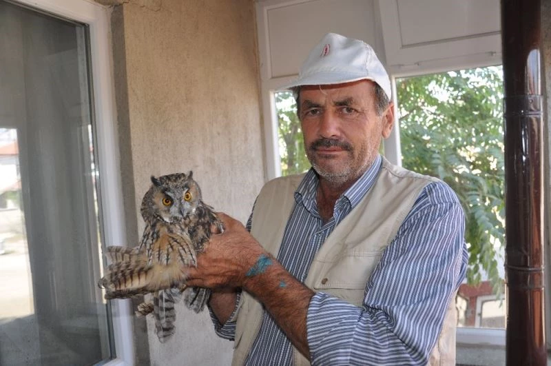 Köpeklerin telef etmeye çalıştığı yaralı baykuşu son anda kurtardı