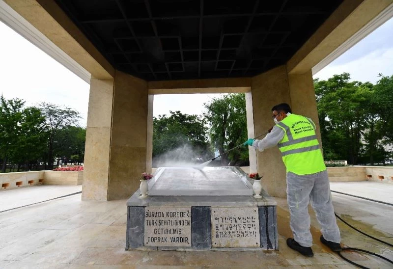 Ankara Büyükşehir Belediyesi, Başkent’teki önemli anıtların temizlik, bakım ve tadilat çalışmalarını da üstleniyor. Büyükşehir Belediyesi Kent Estetiği Daire Başkanlığı Bakım ve Onarım Şube Müdürlüğü, en son 2010 yılında bakımı yapılan “Kore’de Savaşan Türkler Anıtı”nda detaylı temizlik ve tadilat çalışması gerçekleştirdi. Kore Anıtı’nda yapılan kontroller sonucunda hasar görmüş kırık kaplamalar yenileriyle değiştirilerek, zeminde bulunan kilit taşların tamamı onarıldı. Kent Estetiği Daire Başkanlığı ekipleri, 15 gün devam eden yenileme çalışmaları kapsamında tüm cepheleri boyayarak anıtı temiz bir görünüme kavuşturdu.Kore Savaşı’nın 70. yıl dönümünde yapılacak etkinlikler çerçevesinde yenilenen Kore Anıtı, 25 Haziran Perşembe günü yapılacak anma törenine katılacak vatandaşların ziyareti için hazır hale getirildi.