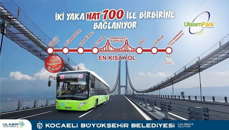 Ulaşım Park AŞ’nin hizmetinde olan Hat 700, ilk seferine 1 Temmuz Çarşamba günü başlıyor. Hat 700 Gölcük ilçesinden kalkış yapacak. Sefer sırasında Karamürsel Dereköy durağına kadar Hat 700 yolcu alabilecek. Yalova Altınova İlçesinden geçerek Osmangazi Köprüsü’nü kullanacak olan Hat 700’ün seferi Gebze ilçesi Kent önünde son bulacak. Gebze ilçesi Kent önünden kalkacak Hat 700 Osmangazi Köprüsü’ne kadar her duraktan yolcu alabilecek.