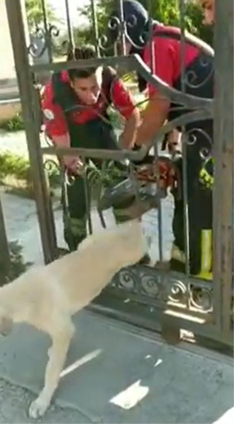 Olay, Merkezefendi ilçesi Hacıeyüplü Mahallesinde meydana geldi. Bir sokak köpeği demir kapı korkuluklarından geçmek isterken sıkıştı. Yardım edilmesi için havlayan köpeği gören çevredeki vatandaşlar kendi imkanlarıyla köpeği çıkarmak istese de bunda başarılı olamadı. İtfaiye ekipleri ihbar üzerine bölgeye sevk edildi. Özel aparat sayesinde genişletilen demir korkuluklardan sokak köpeği kurtarıldı.