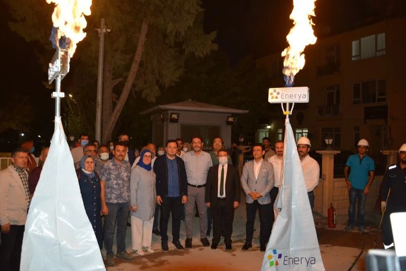 Korkuteli ilçesinde doğalgazın ilçeye getirilmesi çalışmaları kapsamında Belediye önünde ilk doğalgaz test ateşi yandı.