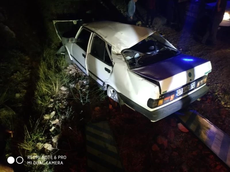 Mevlüt Kavlak'ın idaresindeki 07 AHG 870 plakalı otomobilin, Küçüklü Mahallesi'nde gece saatlerinde seyir halindeyken önüne köpek çıktı. Sürücünün köpeğe çarpmamak için direksiyonu aniden çevirmesi sonucu otomobil şarampole yuvarlandı.