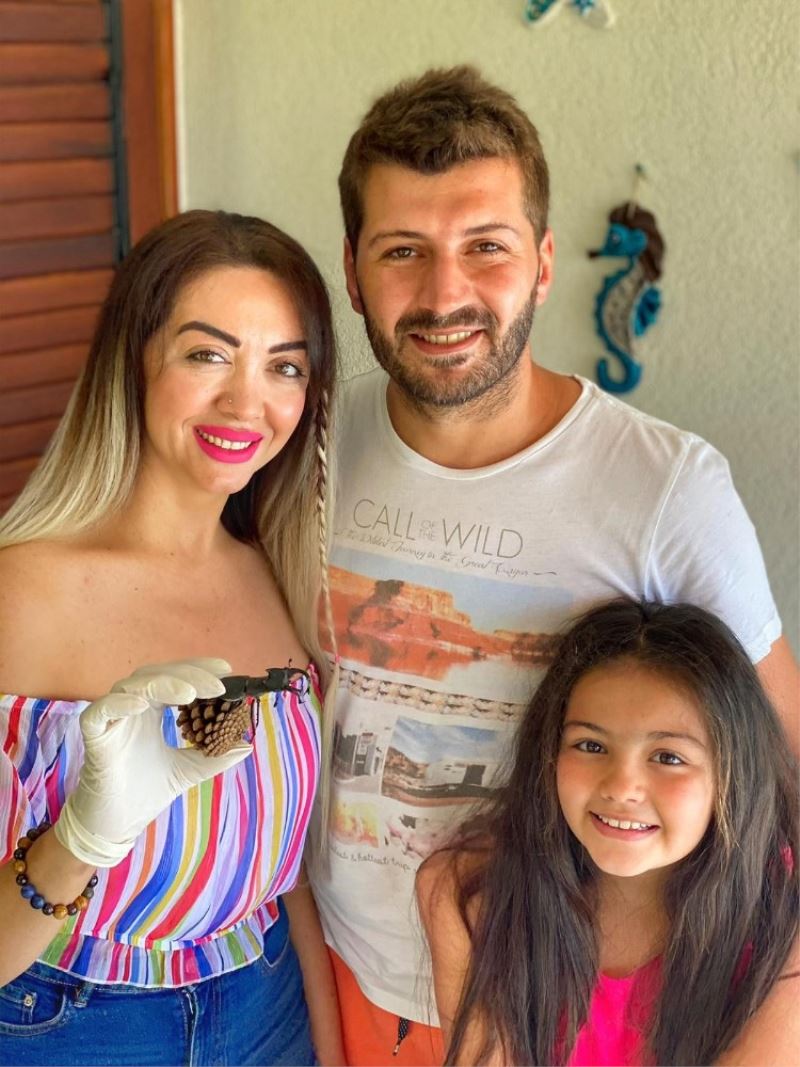 Aydın’ın Kuşadası ilçesinde, yazlıklarındaki ailenin bahçesine gelen, nesli tükenme tehlikesi içinde olduğu için koruma altında olan Geyik Böceği, aileyi heyecanlandırdı.
