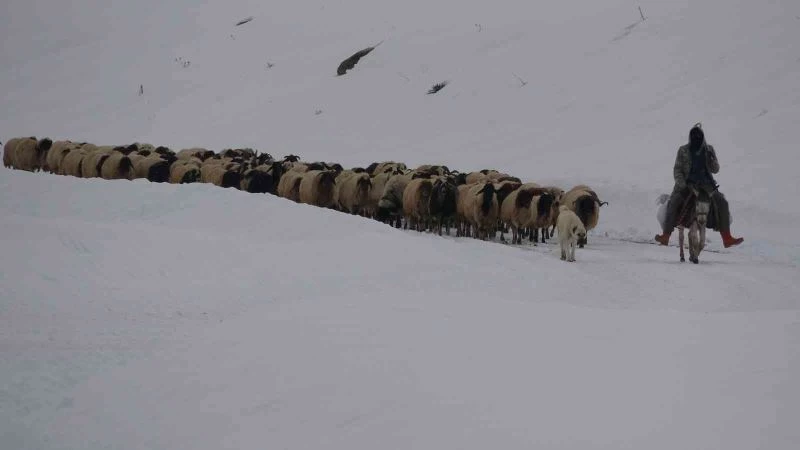 Dünyada yalnızca Van’da yetiştirilen ve koruma altında olan meşhur Norduz koyununun karda yürüyüşü kartpostallık görüntü oluşturdu.