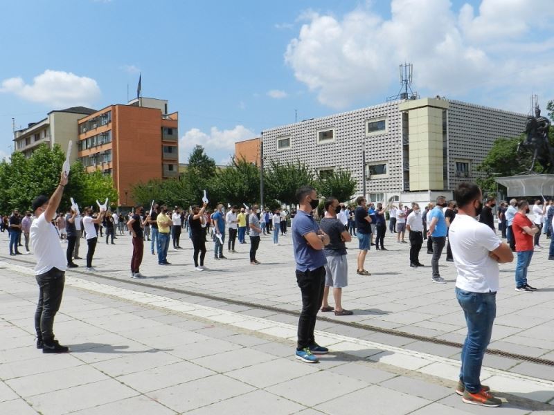 Kosova’nın başkenti Priştine’de yeni tip korona virüs (Covid-19) salgınına karşı alınan önlem nedeniyle zor günler geçirdiklerini ifade eden restoran ve kafe sahipleri, hükümetin getirdiği toplanma yasağına rağmen protesto gerçekleştirdi. Maske takan protestocular, sosyal mesafeyi koruyarak yeniden uygulamaya koyulan ve saat 21.00’den başlayarak sabaha kadar süren sokağa çıkma yasağı nedeniyle zor durumda olduklarını ve birçok mekanın kapanmasından endişe duyduklarını dile getirdi. Başbakanlık binası önünde geniş güvenlik önlemleri alan polis, toplanmaların yasak olduğunu hatırlatarak protestoculardan dağılmalarını talep etti. Ancak yüzlerce restoran ve kafe sahibi, uyarılara rağmen anahtarlı eylemini gerçekleştirdi.