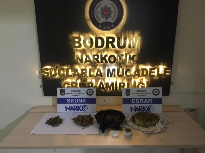 Bodrum Cumhuriyet Başsavcılığı koordinesinde alınan arama kararına istinaden şahısların üzerinde, araçlarında ve H.E. isimli şahsın ikametinde yapılan aramada; 300 gram toz esrar ile 4 parça halinde daralı 861 gram esrar maddeleri yakalandı. Uyuşturucu maddelere el konulurken, zanlılar elde edilen suç unsurları ile adliyeye sevk edilecek.