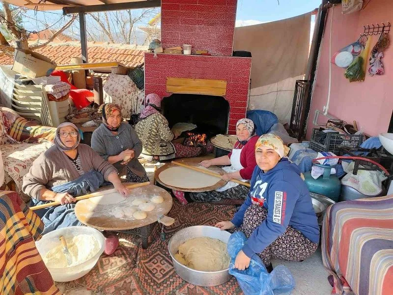 Denizli’nin Acıpayam ilçesinde ateşin başına geçen köy kadınları, depremzedelere gönderilmek üzere ekmek, pide, katmer, gözleme yapıyor.