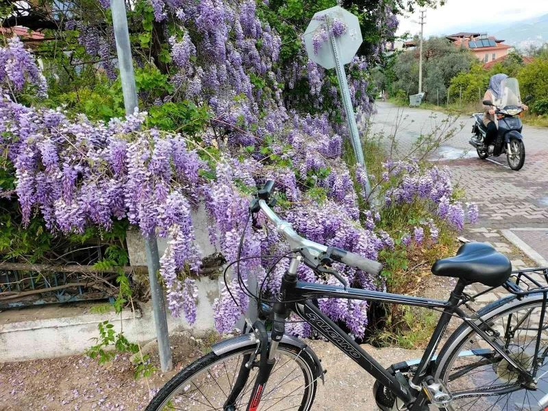 Köyceğiz’de evlerin önünde, bahçe duvarlarında, balkonlardaki mor salkımlar bahar mevsimi ile birlikte çiçek açtı. Çevreye güzellik katan mor salkımlı ağaçlar vatandaşların da dikkatini çekiyor. Mor salkımlı ağaçların çiçekleri salkımlar halinde renkleriyle tablo gibi görüntüler oluşturarak görenleri hayran bırakıyor. Vatandaşlar mor salkımlı çiçeklerle fotoğraf çektirerek sosyal medyada paylaşıyor. Mor rengi ile dikkat çeken bu salkım çiçek aynı zamanda güzel kokusuyla da mest ediyor.