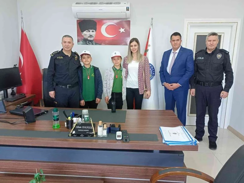 23 Nisan Ulusal Egemenlik ve Çocuk Bayramı kutlama programı çerçevesinde Köyceğiz Toparlar Ortaokulu öğrencileri Salih Türker Türkmen ve Şule Kaplan ile Matematik Öğretmeni Damla Acar, Toparlar Ortaokulu Müdürü Aziz Yıldız, İlçe Emniyet Müdürü Cihan Dalkılıç’ı makamında ziyaret etti. Yapılan ziyaret programında İlçe Emniyet Müdürü Dalkılıç, 23 Nisan Ulusal Egemenlik ve Çocuk Bayramını kutlayıp, görevini temsili olarak Şule Kaplan’a devretti. Görevi devralan Şule Kaplan Emniyet Müdürlüğü hizmetleri hakkında bilgi aldı. Gerçekleştirilen ziyaretin ardından İlçe Emniyet Müdürü, ziyarette bulunan öğrencilerin trafik aracına ve polis motosikletine binmelerini sağladı. Hatıra fotoğraflarının çekilmesiyle ziyaret sona erdi.