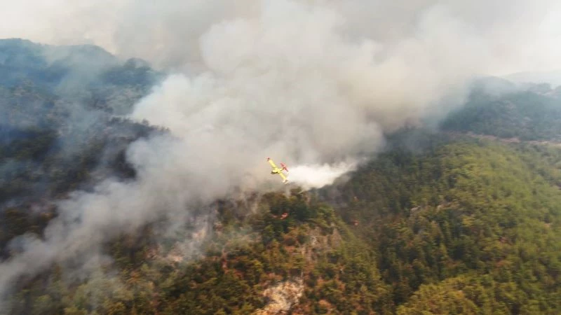 Köyceğiz yangının 7’inci gününde yoğun bir müdahale yapılırken, yangın ve uçakların müdahalesi havadan görüntülendi. Köyceğiz gölünden su alan helikopter ve amfibik uçaklar, yanan sahaya sık sık sorti gerçekleştiriyor.