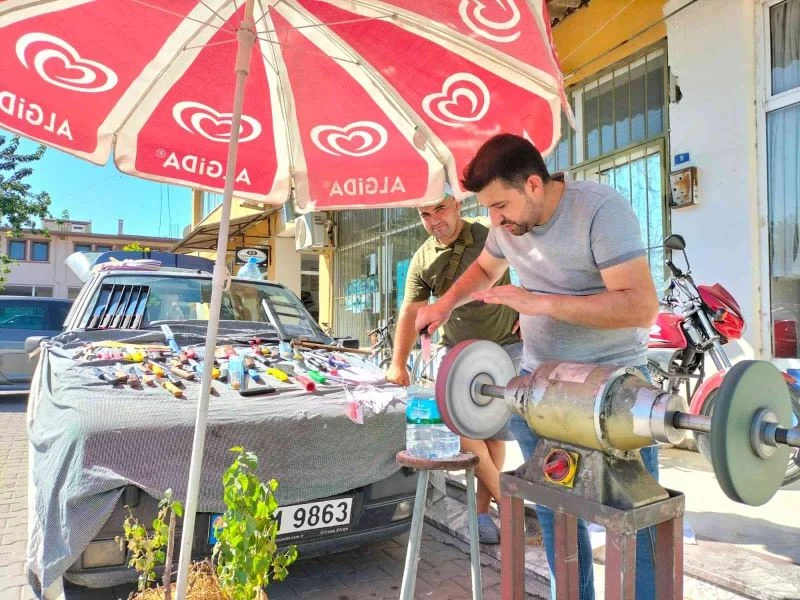 Muğla’nın Köyceğiz ilçesinde bıçak bileme ustaları Kurban Bayramı öncesi fazla mesai yapıyor.