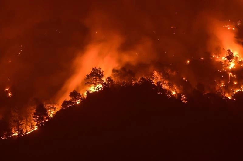 MUĞLA – Muğla Köyceğiz’de tekrar alevlenen orman yangınları gece saatlerinde rüzgarın şiddetlenmesiyle artarak devam etti. Dağlık alandan yükselen alevler geceyi aydınlattı.