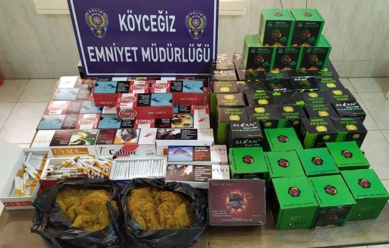 Muğla’nın Köyceğiz ilçesinde polis tarafından bir büfeye yapılan baskında, gümrük kaçağı tütün, boş makaron ve nargile tütünü ele geçirildi.