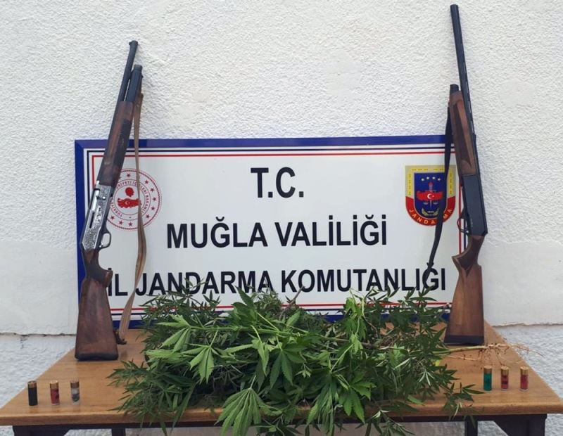 İstihbarat Şube Müdürlüğü ve Köyceğiz İlçe Jandarma Komutanlığı ekipleri tarafından M.G. isimli şahsın arazisinde yapılan aramada, 38 kök kenevir bitkisi ve evinde yapılan aramada 2 adet ruhsatsız av tüfeği ele geçirildi.