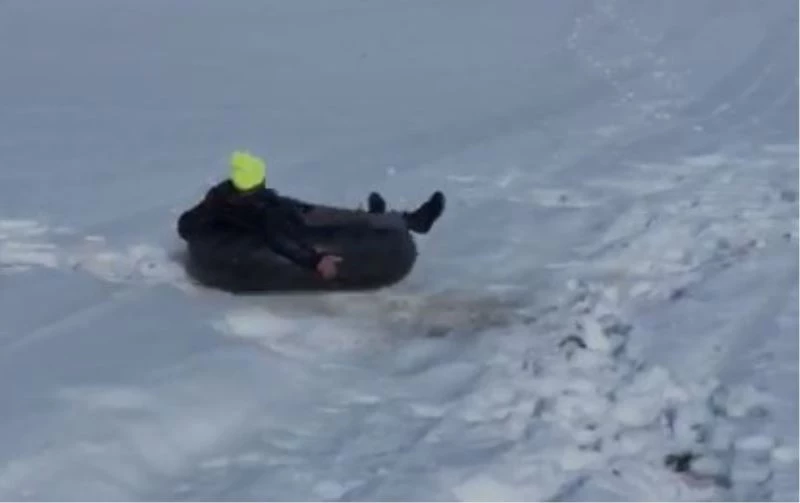 Köylülerin araç lastiği ile adrenalin dolu kayak keyfi