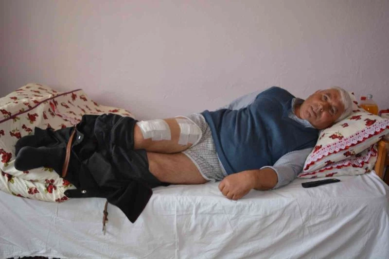 “İki köpek karşıdan domuzu kovalıyordu. Ben de Selimiye Barajı boyunda koyun otlatıyordum. Domuz oradan geçerken benim de iki köpeğim var onlarla karşılaşınca bana çarptı ve beni hastanelik etti. Köpeklerim olmasaydı domuz beni öldürecekti. O an orada koyunlarımı bıraktım telefonlar çekmediği için yola düşerek yakınlardaki köyden yardım istedim. Yakın köyden minibüs gelerek beni Atatürk Şehir Hastanesi’ne getirdiler. Acil serviste hemen müdahale ettiler ve bacağıma 50-55 dikiş atıldı. Domuzun bana saldırması anında köpekler olmasaydı kendimi öldü saymıştım”.