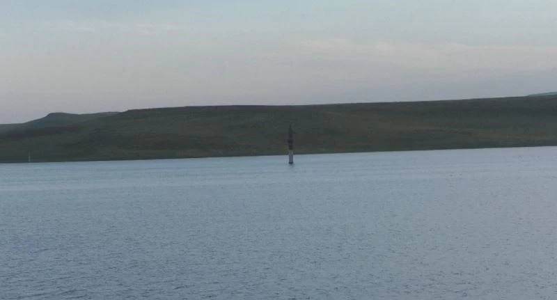 Kars Baraj Gölü’nde kapaklar kapatılınca eski Çamçavuş köyü yeniden sular altında kaldı. Sular altında kalan köyden geriye sadece cami minaresi kaldı.