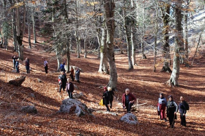 Etkinliğe katılan 140 kişi sonbahar renklerine bezenmiş Yirce Yaylası'nda yürüyüş yaptı.