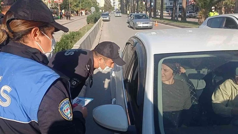 Trafik ekipleri tarafından sürücülere “Hayat Bir Hareketine Bakar” uygulaması kapsamında trafikte emniyet kemeri takmanın önemini anlatan ve trafik kurallarını hatırlatan broşürlerin yanı sıra araçlarda yolculuk eden küçük çocuklara da düdük ve balon hediye edildi.