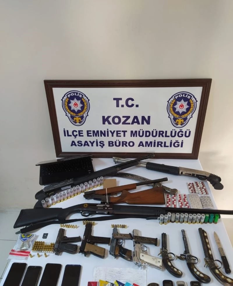 Adana Emniyet Müdürlüğü ve Kozan İlçe Emniyet Müdürlüğü ekipleri, Cumhuriyet Savcılığının talimatı ile nitelikli yağma suçundan "İkizler çetesi" olarak adlandırılan gruba yönelik baskın düzenledi. Yapılan şafak operasyonunda 6 şüphelinin ev ve iş yerlerinde yapılan aramalarda 4 adet ruhsatsız av tüfeği, 2 adet 9 mm’lik tabanca, 2 adet 7.65 mm’lik tabanca, 3 adet eski tip iğnesiz tabanca, 34 adet av tüfeği fişeği, 50 adet 7.65 mm tabanca fişeği, 9 adet 9 mm tabanca fişeği, 1 adet bıçak (kama), 1 adet 84 bin TL tutarında senet, 80 adet uyuşturucu hap ve esrar maddesi ele geçirildi. Ayrıca gözaltına alınan 6 şüphelinin cep telefonlarına ve dijital materyallerine el konuldu.