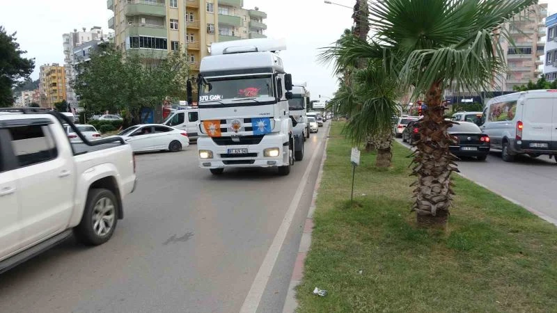 İlçede kamyonlar ile konvoy düzenleyerek seçim kutlamalarına katılırken yüzlerce vatandaş araçlarına Türk bayrakları, AK Parti ve Milliyetçi Hareket Partisi bayrakları ile ilçede tur attı.
