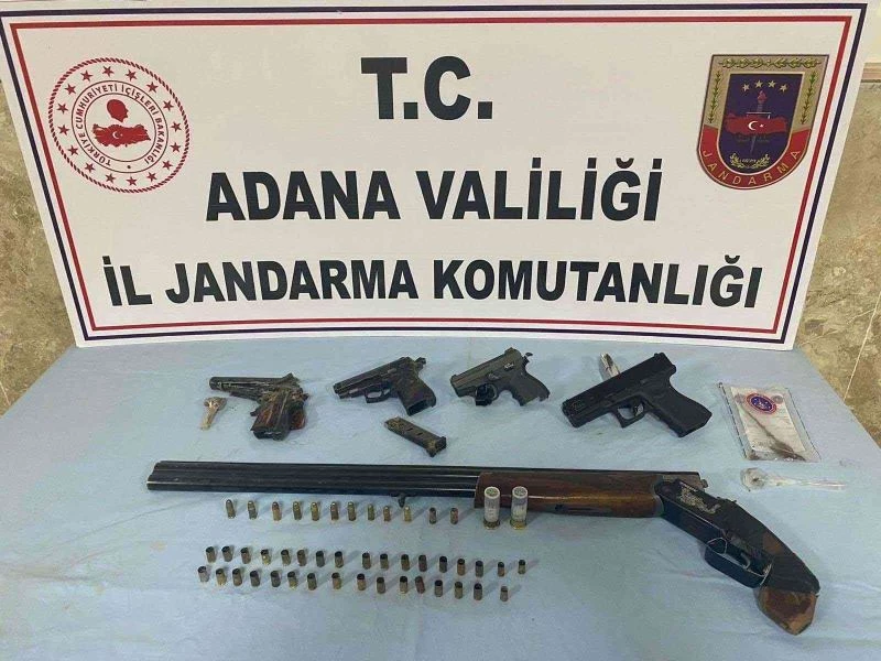 Arama sonucunda 4 adet ruhsatsız tabanca, 1 adet ruhsatsız av tüfeği, 10 adet tabanca fişeği ve 2 kök kenevir bitkisi ele geçirildi. C.K. isimli şahsın 10 ayrı suçtan suç kaydının bulunduğu 13 Ekim 2021 tarihinde Kozan-Postkabasakal Mahallesinde meydana gelen ateşli silahla yaralama olayının şüphelisi olduğu tespit edildi.