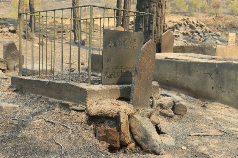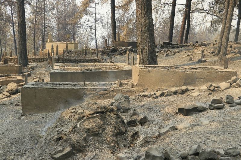 Minnetli Mezarlığı da yangından etkilendi. Mezarlıkta bulunan mezarların taşları simsiyah olurken, topraklar da yerini hep küle bıraktı. Birçok mezarın da taşlarının altından yandığı görülürken bölgede hiçbir ağacın yeşil kalmaması dikkat çekti. Mezarlıkların toprağına ekili çiçeklerin de yandığı görüldü.