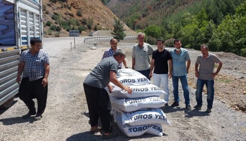 ADANA - Adana'nın Kozan ilçesindeki yangın bölgesindeki hayvanlara yem desteği yapıldı.