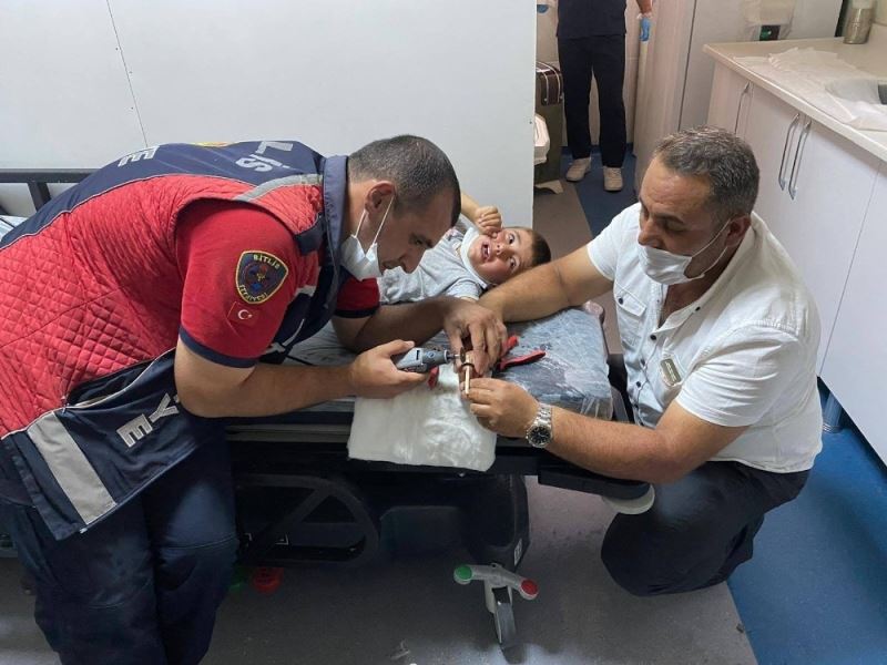 Bitlis’te 6 yaşındaki küçük çocuğun parmağındaki yüzük çıkmayınca ailesi paniğe kapılarak hastaneye götürdü. Hastanede de yüzük çıkarılamayınca itfaiye ekipleri gelerek yüzüğü keserek çıkardı.