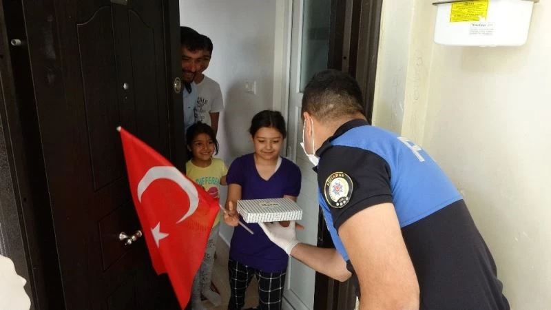 Adıyaman’da, polis ekipleri tarafından kendisine getirilen bayram şekerlerini teslim alan küçük kızın sevinci yürekleri ısıttı.
